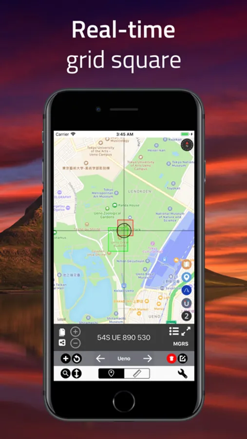 Pin your desired location on the map to start navigation. Real-time bearing/distance update and large coordinate readout for on-the-field usage are available.