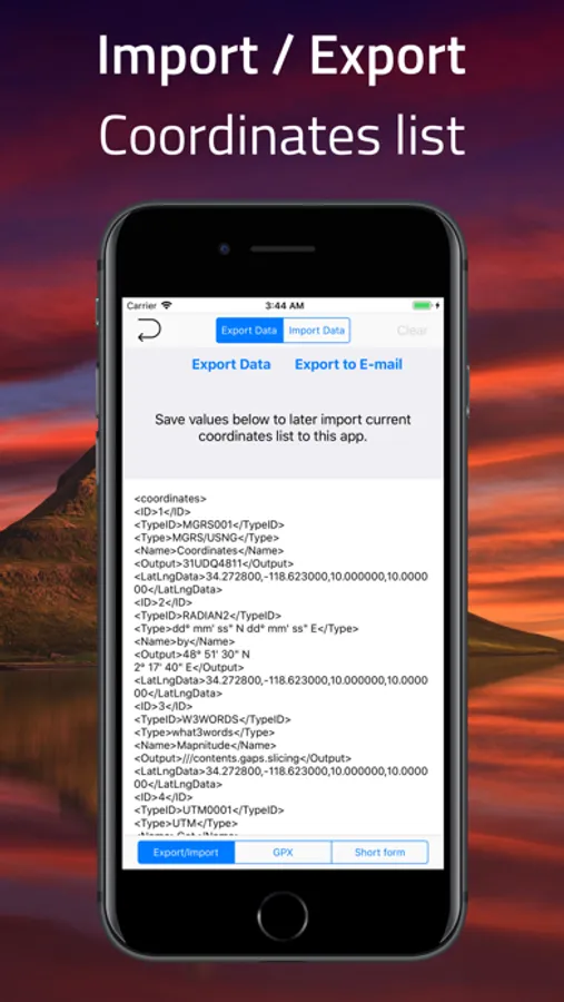 - Import previously-created file to migrate or backup coordinates data between devices.