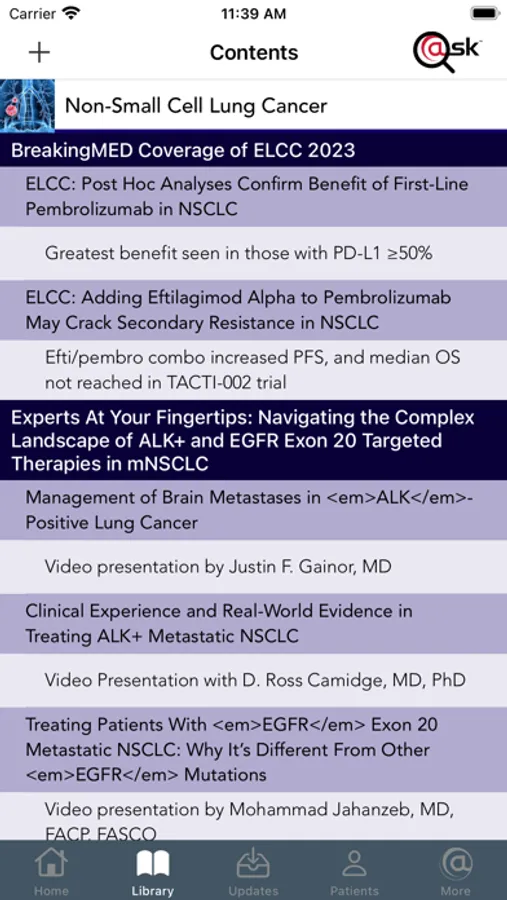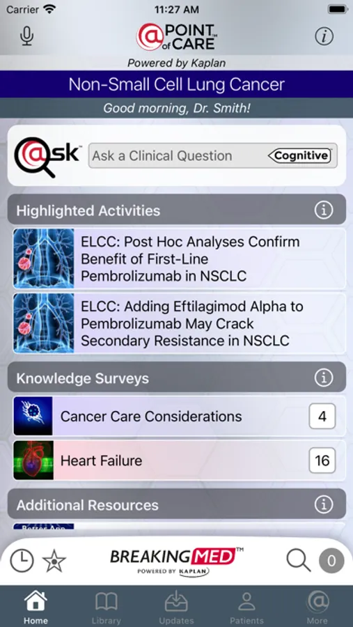 @Point of Care™ With @sk Cognitive is a clinical decision-making mobile platform. Non-Small Cell Lung Cancer @Point of Care™ provides a streamlined clinical decision support tool for clinicians to obtain content when it is needed—enabling better decisions, better outcomes, and better care.