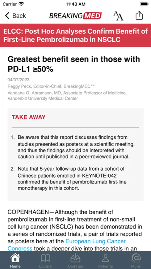Non-Small Cell Lung Cancer @Point of Care™ is designed to: