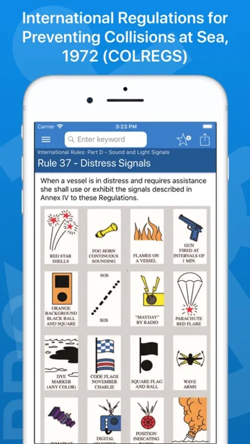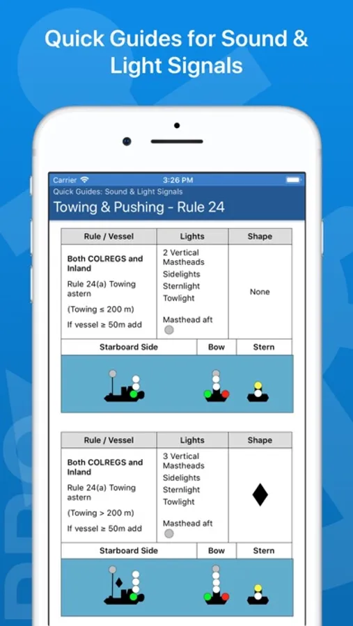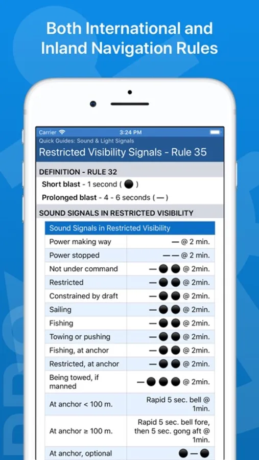 Navigation Rules Pro has everything in our popular Navigation Rules app plus over 100 pages of additional important reference material. Navigation Rules Pro contains a complete copy of the International Regulations for Preventing Collisions at Sea, 1972 (COLREGS), including amendments and the Inland Navigation Rules, in effect for all inland waters, including the Great Lakes plus the following information a boater needs: