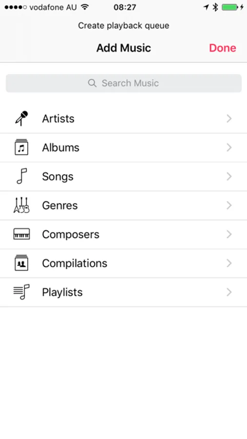 Simple Media Player Lite lets you create an instant playlist with a combination of albums, artists, compilations, composers, genres, and playlists from your iTunes media library*.