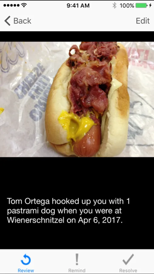 Use this app to take a picture of the moment and send reminders with that image until it's paid back. It doesn't matter if it's a drink, a meal, an invoice reminder or anything else you can take a picture of.