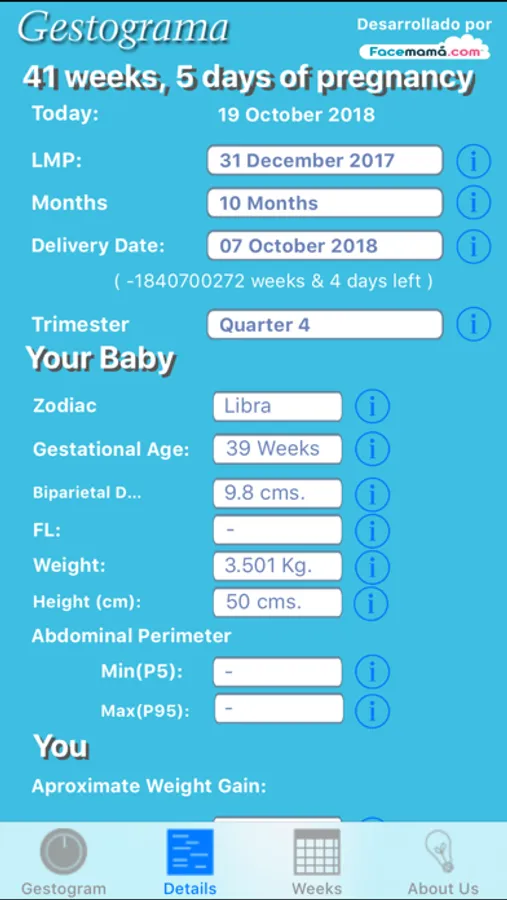 Like your doctor does at each control with a Pregnancy Wheel (also called gestational Disc, Obstetric Wheel, or Pregnancy Calculator), today through Gestograma of Facemamá.com, you will be able to access from your iPhone to everything you need to know about the development of your pregnancy.