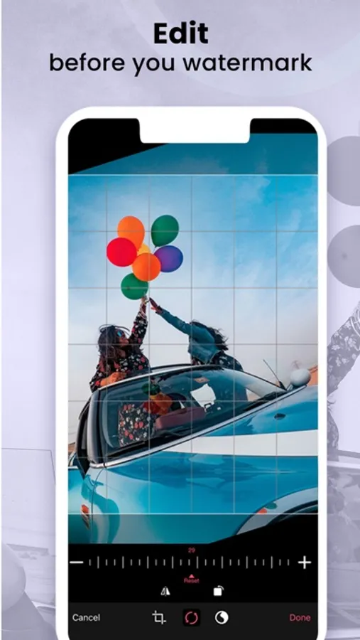 Need to edit your picture before applying watermark? Feel free to; crop, apply black & white filter and rotate the image according to your needs.