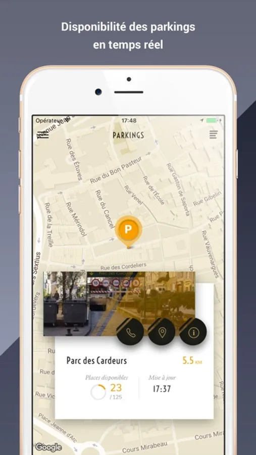 - Disponibilité en temps réel des places de tous les parkings de la ville