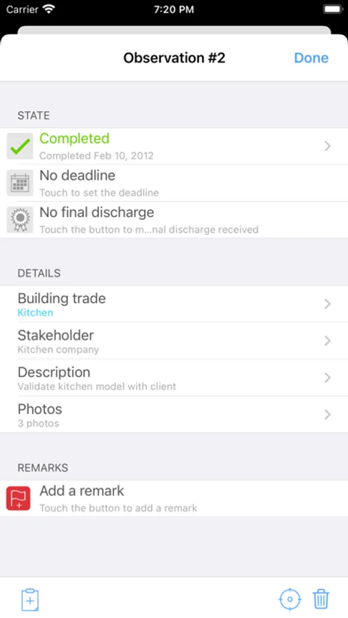 - Quick overview of observations (punch/snag list items) classified by stakeholder.