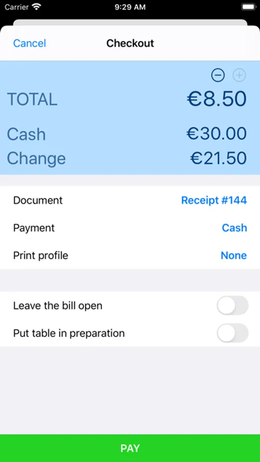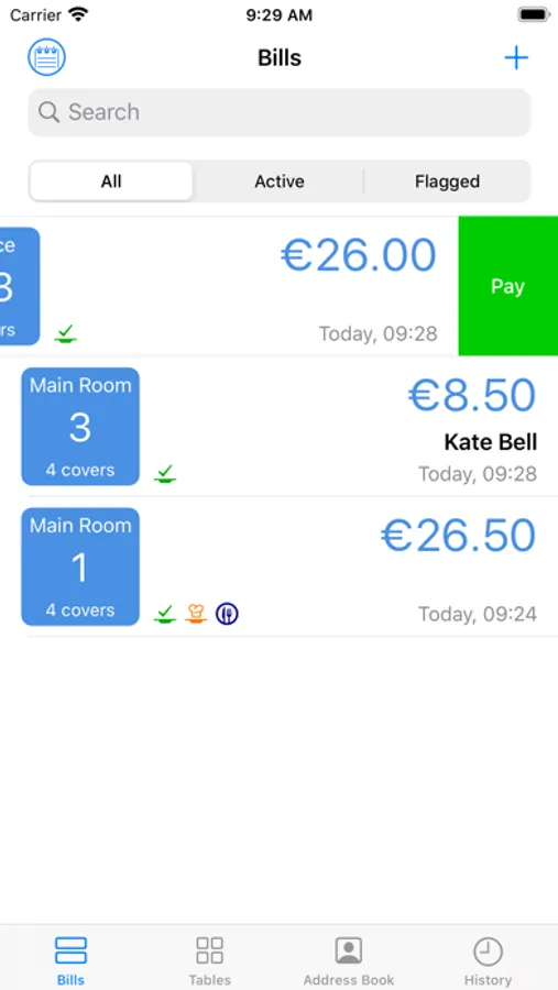 - Checkout a bill entirely or partially, apply discounts, split or merge bills in a simple and immediate way