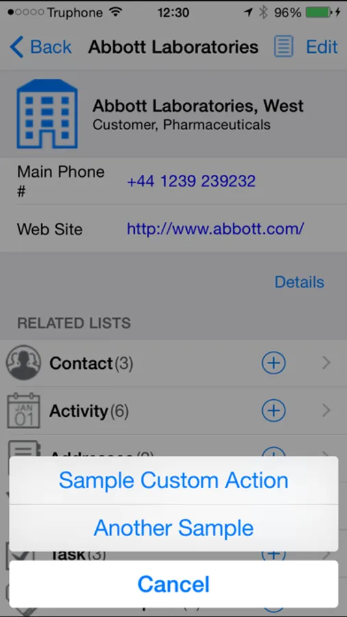 Custom fields and objects can be configured in your Siebel CRM environment. In addition, it automatically synchronizes contacts with the device native address book for easy lookup from the native email and other iPhone/iPad applications.