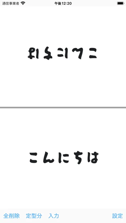 画面が分割自分側で手書き、もしくは入力された文字が向かい合う相手側に反転してリアルタイムで表示されます。