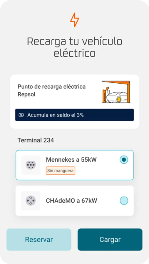 + Desde el 3% hasta el 100% del importe de tus recargas eléctricas en los puntos de recarga en la vía pública de Repsol.