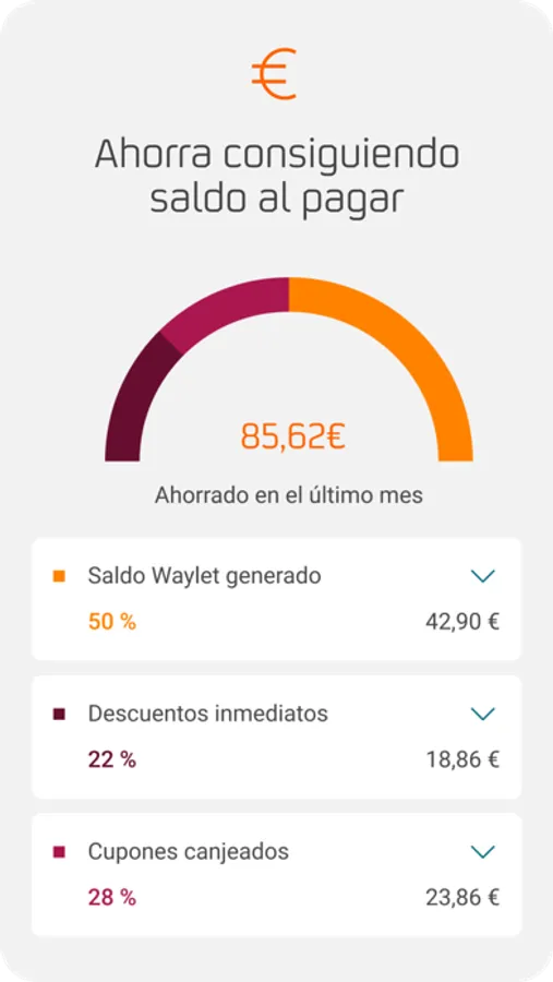 Ahorra con los nuevos Planes Energías: solo por ser usuario de Waylet formas parte de los Planes Energías para ahorrar. Esto significa que al pagar con la app generas automáticamente un ahorro en forma de saldo Waylet que se acumula en tu monedero digital para utilizarlo en futuros pagos:
