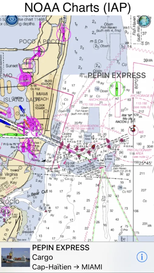 Real time ship map view with North up and Heading up modes so you can look in the direction of the ships on the map to locate them.