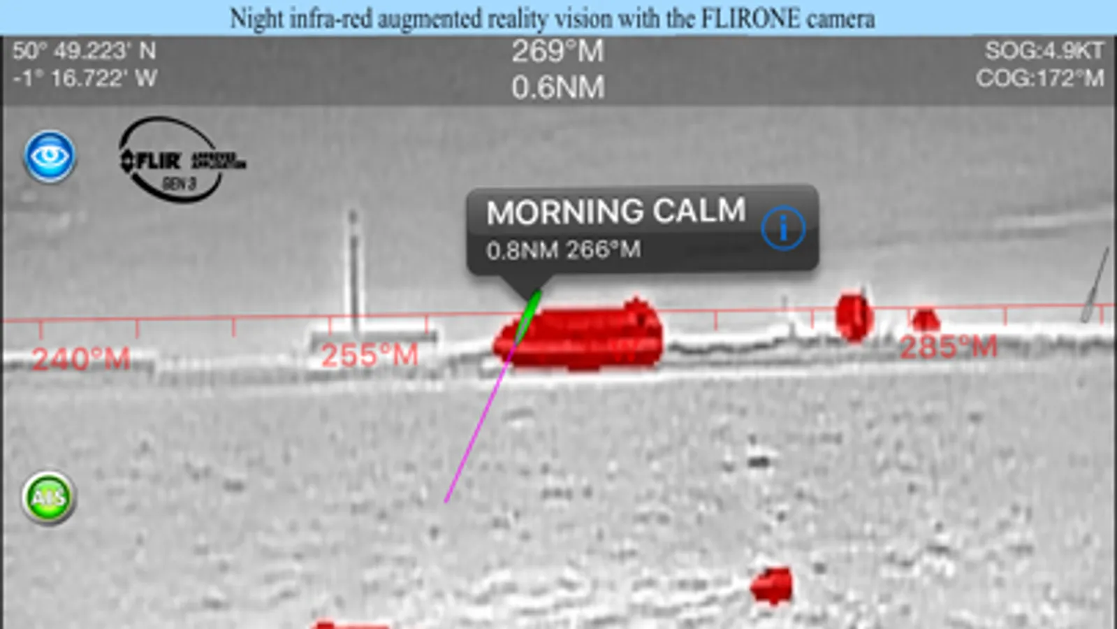 LiveView - Augmented Reality view with ships, compass & horizon overlaid. Works with FLIROne Infra-red cameras as well to see ships & people in the dark & fog (IAP)