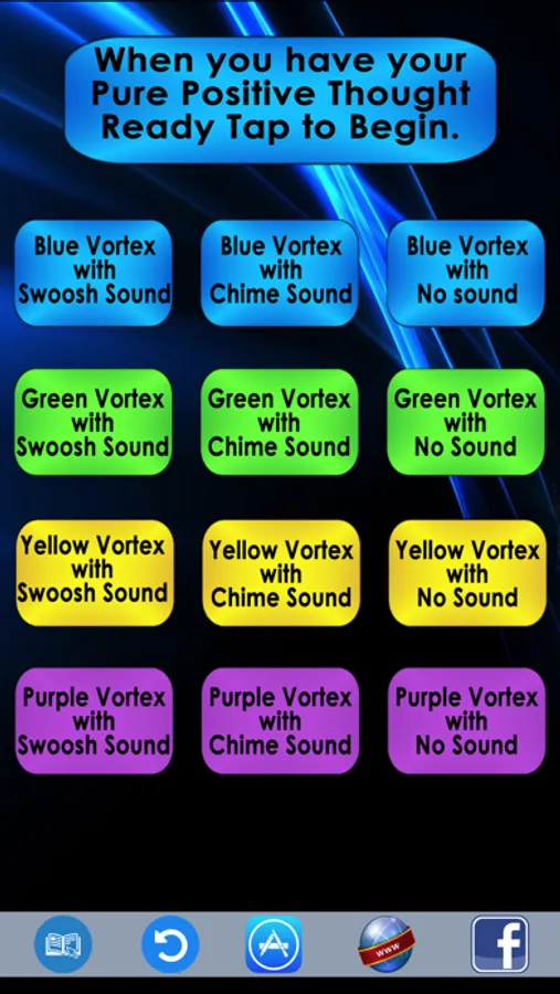 The Law of Attraction timer is optimized to help you enter the Vortex easily. The Law of Attraction timer has a mesmerizing whirling vortex that expands every 17 seconds to help focus you on your pure thought.