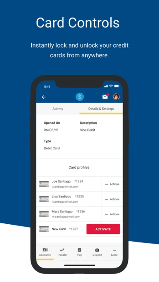 • Control when, where, and how your card is used– lock and unlock your card, report a lost card, set travel plans, initiate a dispute instantly, and more