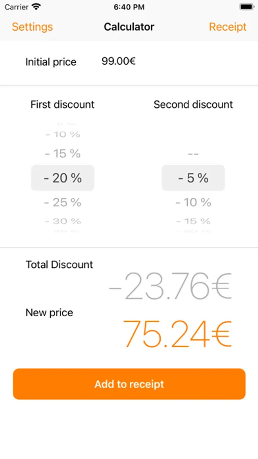 Its operation is very simple. Enter the price of the item, select your discount percentage, and then if necessary that of your second discount. You then instantly get your discount as well as the new price to pay.
