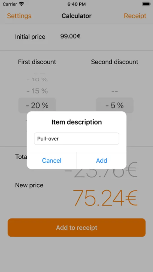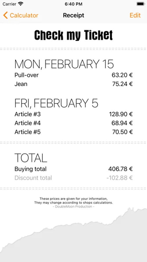 With this calculator, forget about unpleasant surprises. Thanks to its "receipt" function, you can add your items as you shop. We will then tell you all of your discounts as well as the total amount of your purchases. Of course, this receipt remains editable at any time. Thus, we no longer stray from the budget initially set.