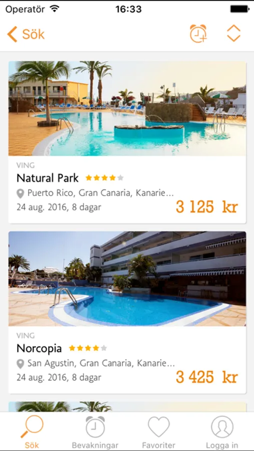 Sök, jämför och bevaka resor från alla stora charteraktörer som Ving, Apollo, TUI, Solresor och Nazar.
