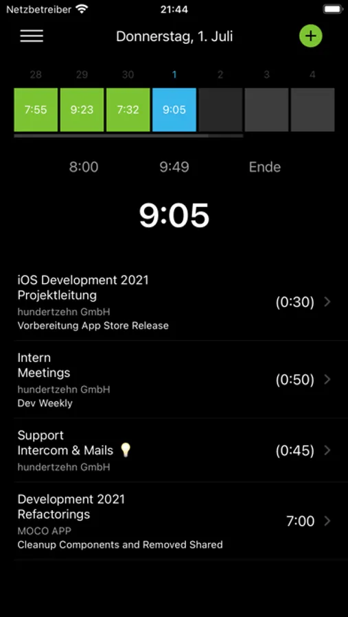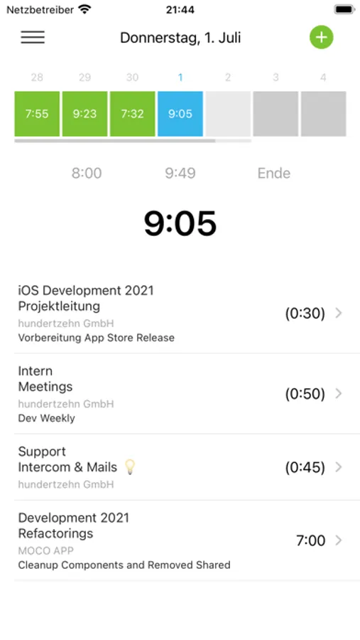 Damit alle Mitarbeiter auch bequem von unterwegs Ihre Stunden eintragen und synchronisieren können gibt es die MOCO iPhone® App.