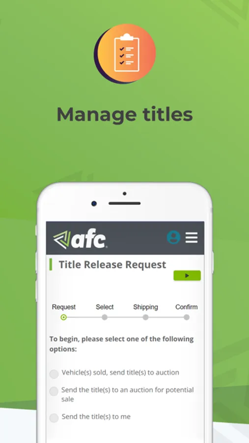 Maximize the time spent managing your business from the palm of your hand! AFC On the Go is the premier dealer mobile application used to conduct business with Automotive Finance Corporation (AFC). Continue to grow your business with top features like: