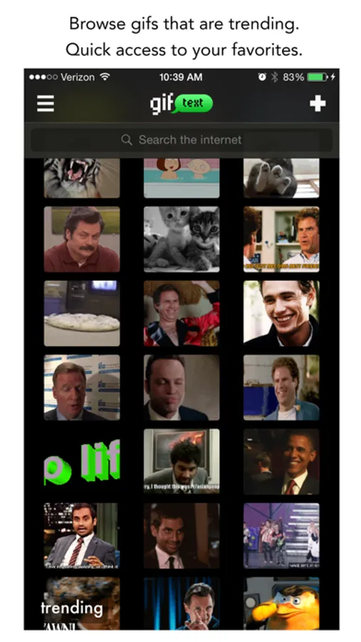 Download gif text, and speak your mind with an animated gif. This awesome free app comes chock full of classic expressions, reactions, and all of your favorite Rage faces animated like you've never seen them before. Simply tap the gif you want, and paste it into your text message. Sort through recently used gifs, save your favorites for easy retrieval, and even download new gifs from our ever expanding catalog. Search online as well, and if you are a PRO member, you can bookmark your favorites!
