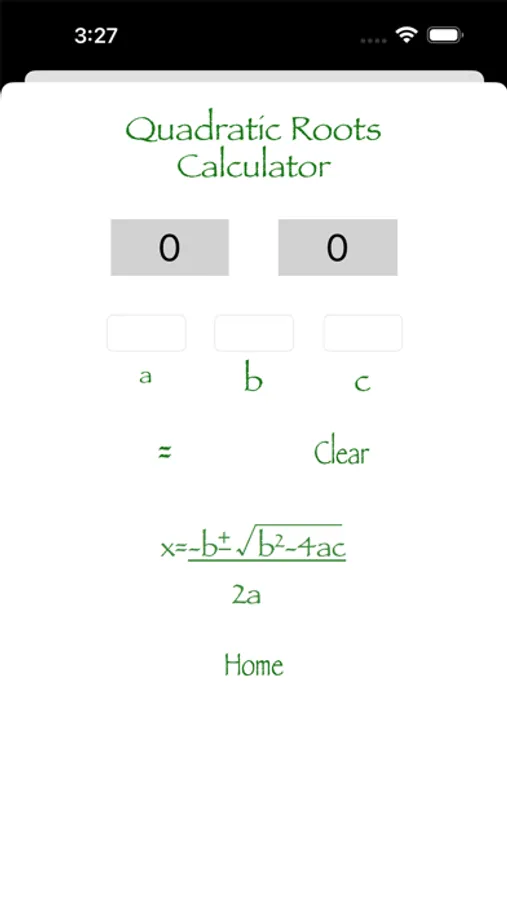 Quadratic Roots Calculator is an easy user friendly app to help you find not only the roots of a Quadratic Equation but also the Axis of Symmetry. This app has all the formulas built in so all you enter is the given info...it's that easy!