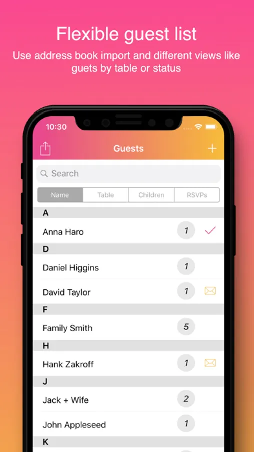 With our wedding app, creating and editing guest lists is a breeze.