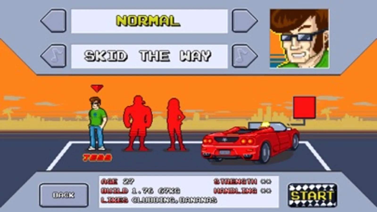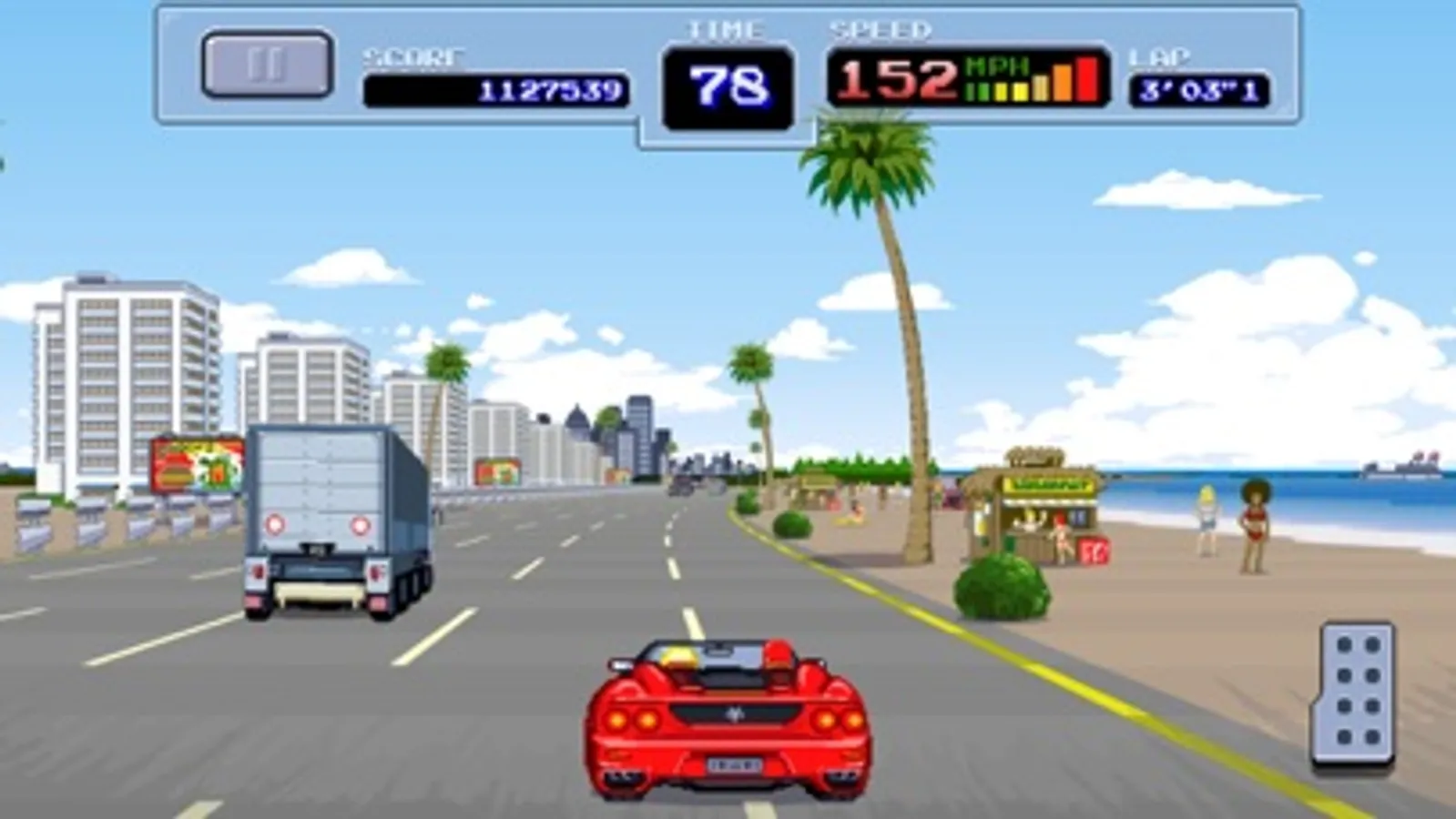 The impressive sense of speed, catchy tunes and a super-retro look, will kick you back to the 80s! Beat the clock to the next checkpoint and don't let the pesky challenger beat you!