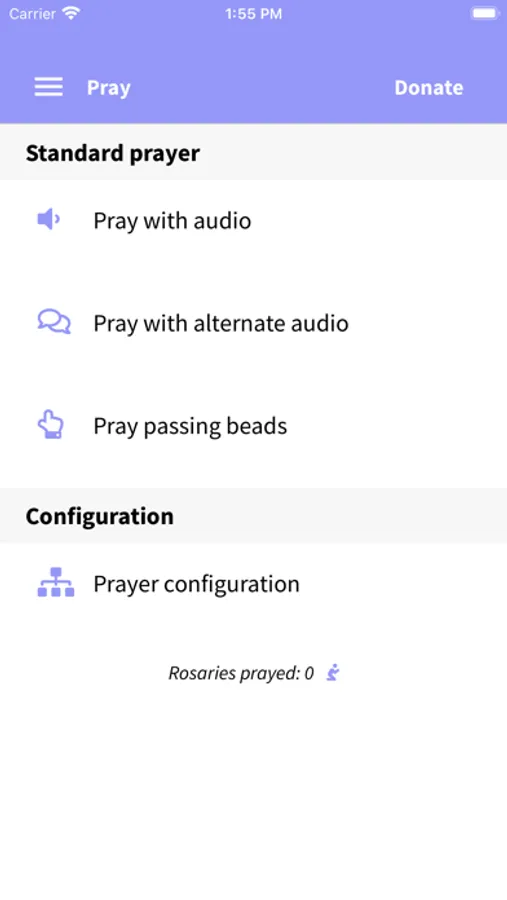 With this app you will be able to pray the rosary. The App will pray audio in an alternate way so you can focus on the prayer and not get lost.