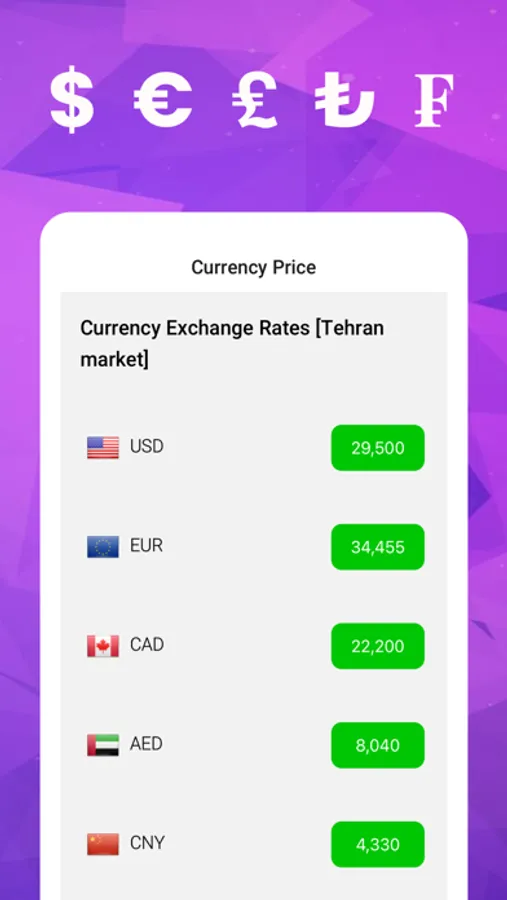 Mesghal App is also one of the most well-recognized app when it comes to checking the most accurate currency rate. Using this app, you will be aware of day-to-day currency rate of more than 30 countries such as: