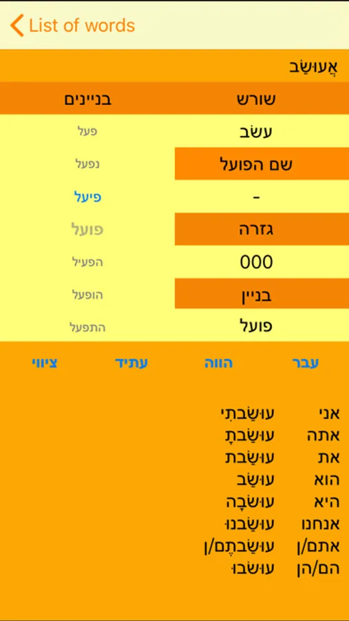 Hebrew Verbs is a mobile version of Hebrew Verbs Tables provided to you for convenience. Now this valuable reference could be always with you!