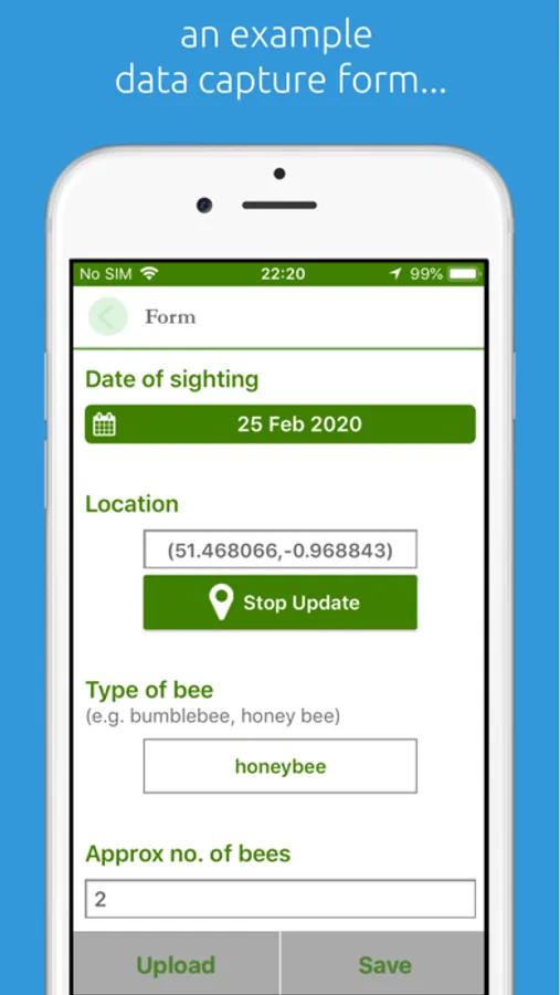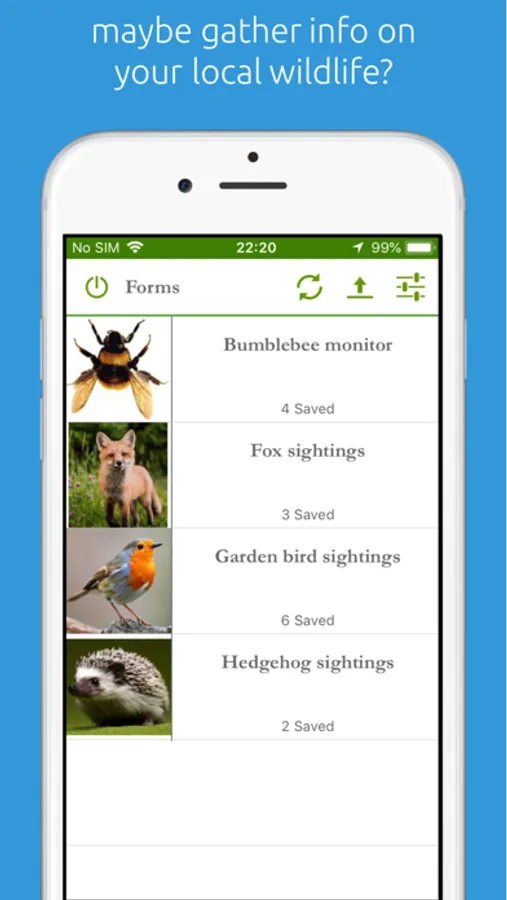 Download your forms to your phone and use anywhere. WildForm can be used with a live internet connection or can be used offline, with any saved information being uploaded when you have a connection again. Take advantage of the features of your phone, such as GPS, camera and microphone, to gather much more interesting information than just plain text.