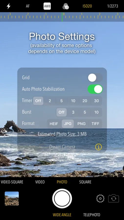 - File format: JPG, PNG, TIFF or HEIF (if supported by the device)