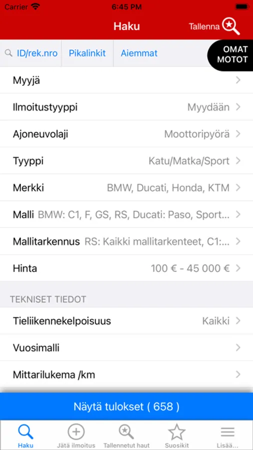 Nettimoto on Suomen suosituin motojen kauppapaikka. Nettimoto-sovelluksessa voit hakea kaikkia Nettimotossa myynnissä olevia uusia ja käytettyjä moottoripyöriä, mönkijöitä, moottorikelkkoja, mopoja, skoottereita ja muita kaksipyöräisiä tarkoilla hakukriteereillä, tallentaa suosikkihakuja ja merkata kiinnostavat ilmoitukset suosikkilistalle. Jokaisesta myynnistä olevasta motosta löytyy 1-24 kuvaa, tarkat tekniset tiedot ja myyjän yhteystiedot. Voit myös lukea myyjälle esitettyjä kysymyksiä ja nähdä myyjän sijainnin kartalla ja lähettää myyjälle yksityisviestejä. Kirjaudu sisään Alma-tunnuksillasi niin voit jättää ja hallita omia ilmoituksia sekä vastata viesteihin.