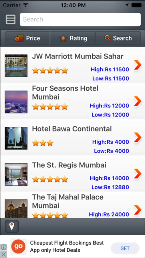 Hotels: Mumbai has the most top world class and prestigious five-star hotels that have become landmarks themselves. Get a list of all the top-notch hotels in Mumbai and book your stay at the best. The app provides detailed info about hotels' ratings, location details, cuisine served, contact info, etc.