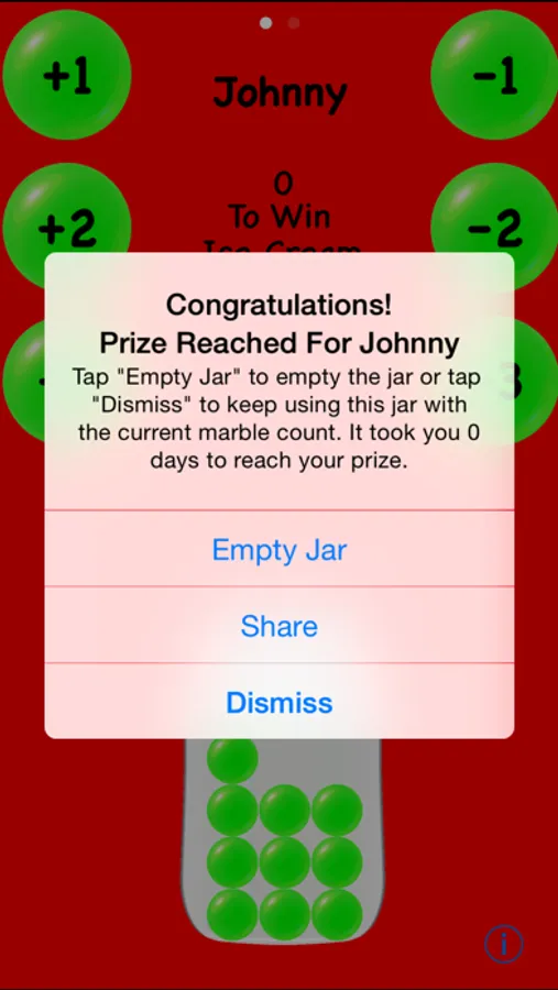 After setting an appropriate goal with their child, iBehave allows parents to reward good behavior (desired outcomes) with marbles . When the child's marbles reach the top of the jar, they earn the reward. Of course, marbles can be lost for various reasons too.