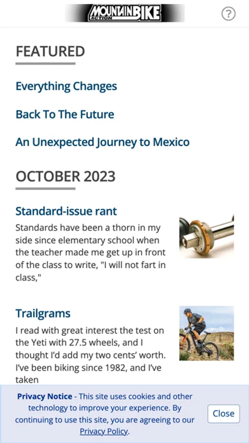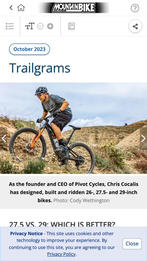 Mountain Bike Action is the world's #1 selling mountain bike magazine. For nearly 30 years, we cover the entire sport, riding and race-testing all the new bikes, parts and accessories, helping you make the RIGHT choices for your off-road cycling experience. Get training tips from our pros (for all ability levels), plus how-to's and maintenance tips. We show you where to find great trails, our pros give you their secret training and nutrition tips, and exclusive interviews with the top riders and manufacturers. We give you perspective on the sport that you won't find anywhere else. With Mountain Bike Action, you'll know what's hot in the mountain bike world! This App lets you buy current and past issues (which are available within the App) and download them to your mobile device. Each issue has enhanced coverage, special video coverage on races, products, and additional features, including links to all manufacturers' websites. 12 issues (one year) for $8.99. Download single copies for $2.99 each. The subscription will include the current issue.