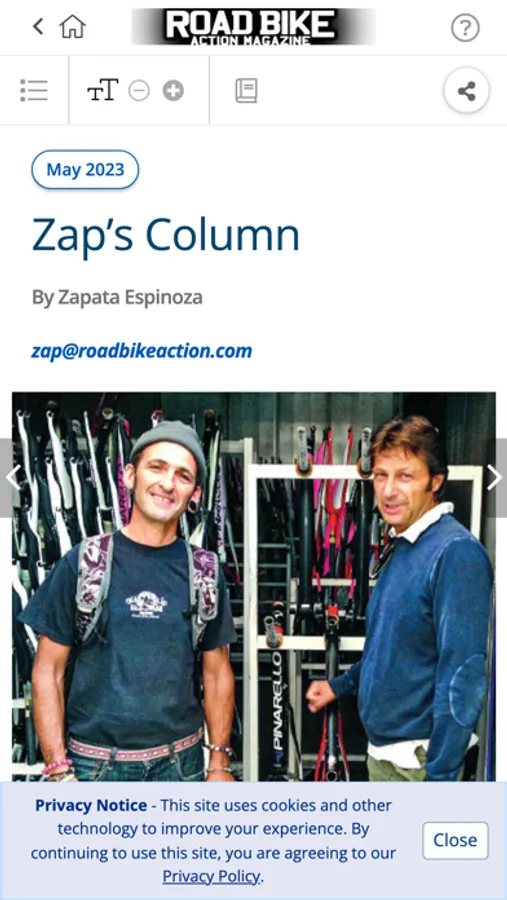Road Bike Action is the world's number-one selling road cycling title. We cover the entire sport, race-testing all the new bikes, and the parts and accessories. We tell you what's working on the road. We'll give you training tips from the pros for all ability levels, plus how-to's and maintenance tips, travel, fitness, nutrition, and exclusive International race coverage and perspective you won't find anywhere else, including the Tour de France. With Road Bike Action, you'll know what's hot in the cycling world. This App gives you the mobile flexibility to review and purchase current and past issues (which are available within the App) and download it to your device. Each issue purchased in the App has enhanced coverage, special video coverage on races, products, and additional features, including links to all manufacturers' websites 10 issues (one year) for $8.99. Download the current issue, or back issues for $2.99 each. The subscription will include the current issue if do not already own it.