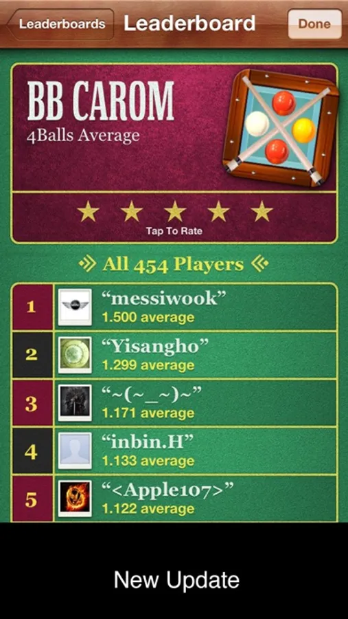 We have tried to combine a game with real billiards world, and it worked well. Please, enjoy with your friends and compete with other gamers in the world through the Game Center.