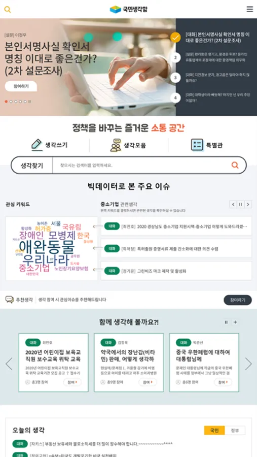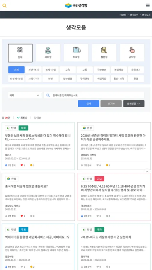 간단한 검색과 상세 검색 기능을 제공하여 민원과 정책을 검색할 수 있습니다.