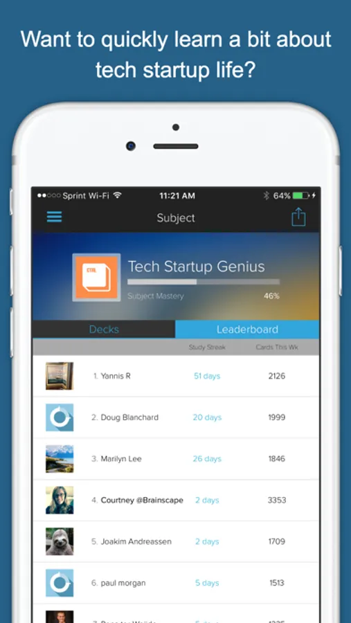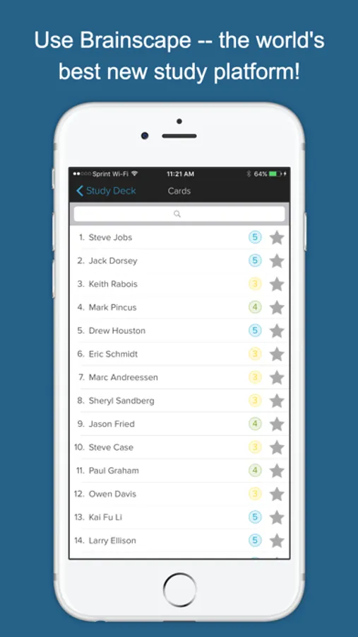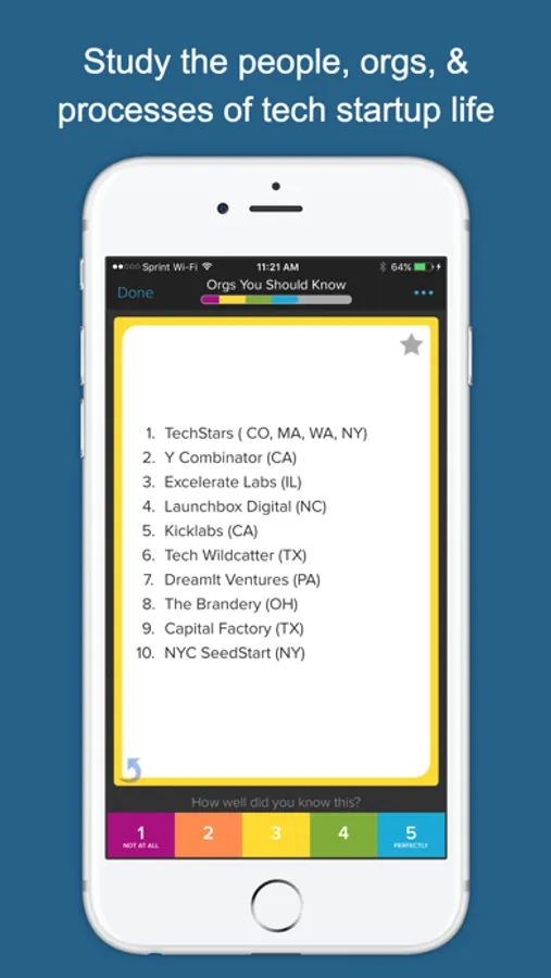 Developed by a bunch of entrepreneurs in the New York & Silicon Valley startup communities, Tech Startup Genius is a collection of the most important people, organizations, and buzz-words that you should know about in order to survive in this world. An alternative app title could have been: “Stuff that we wish we knew when we started our companies 2 years ago.” This app will drill you on this content in a matter of hours rather than years -- using Brainscape’s unique Confidence-Based Repetition process.
