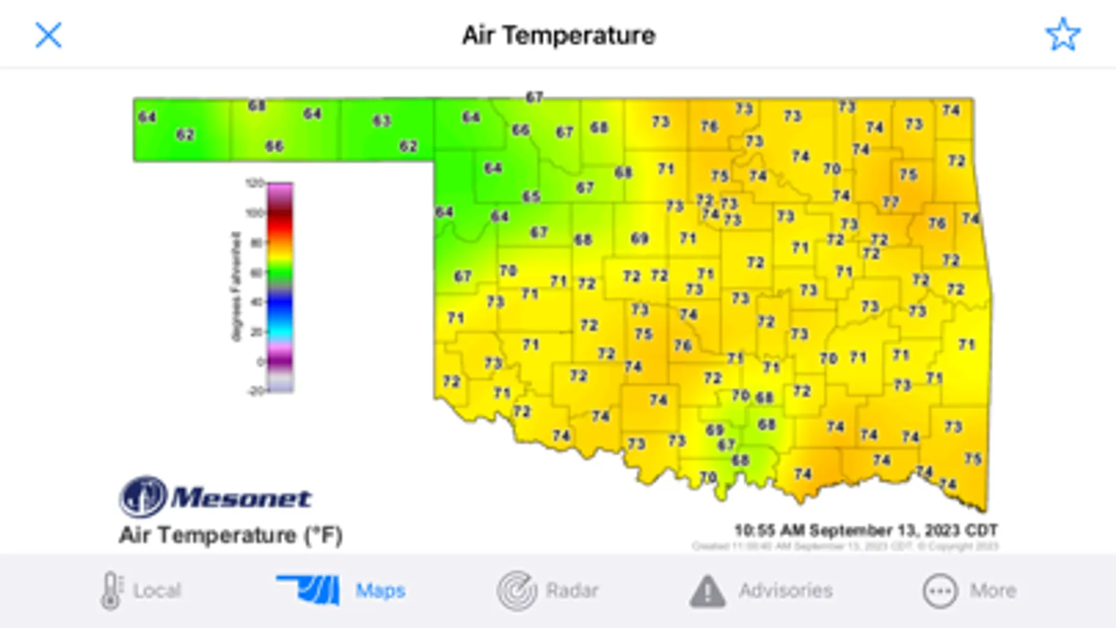 • Get real-time weather observations from 120 Mesonet weather stations — at least one in every county — across the state.