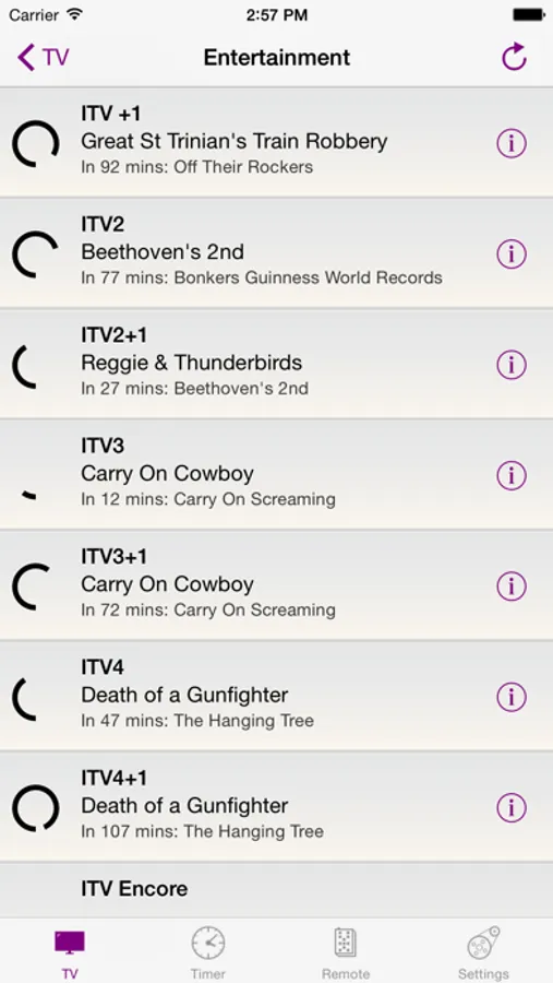 Enter the IP address of your Dreambox in the settings tab. You can now check what is currently on your favourite channels, switch channels etc.