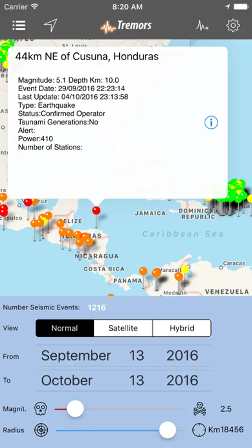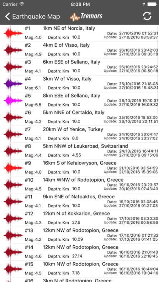 - Global "Earthquake List" in order of Event Date, to always know the latest earthquake