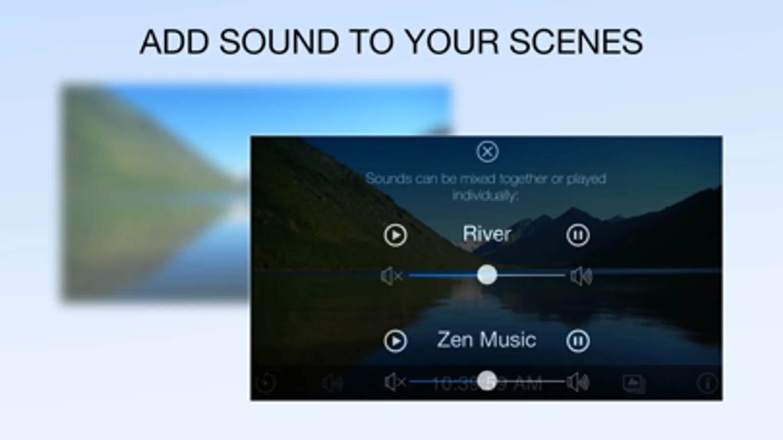 Background sounds & music can be played individually or mixed together, with each sound having its own individual volume control.