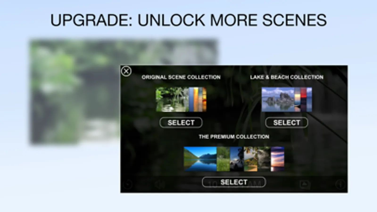 To get the full relaxation experience, we strongly recommend that you consider taking advantage of the upgradable features that the app has to offer:
