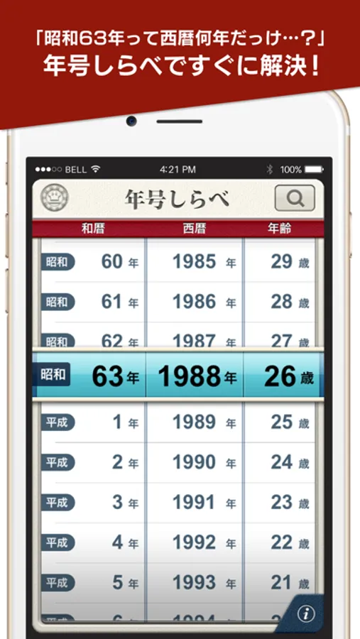 年号をしらべるアプリです。アイコンに和暦と西暦が書かれているのが最大の特徴!