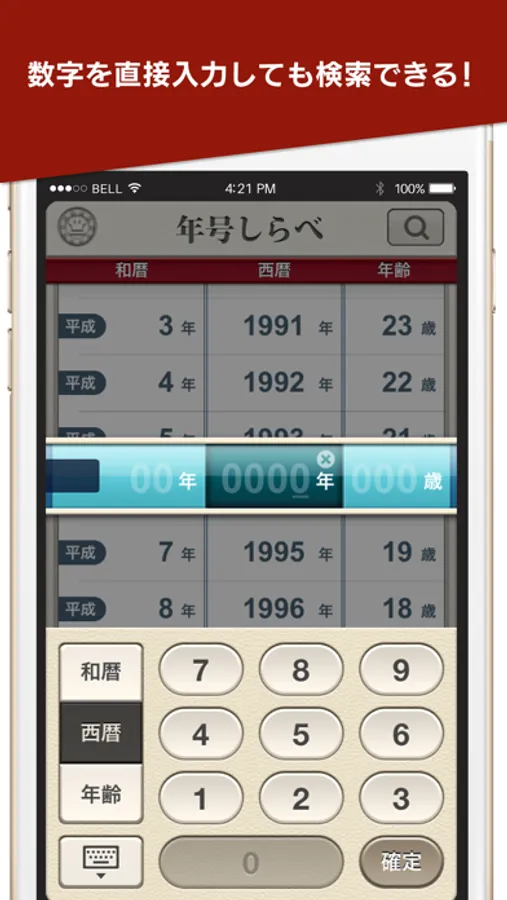 アプリ内では年号ロールで知りたい年を簡単に調べられます。