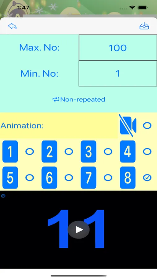 3. Lower right corner: Show/hide the smallest number, largest number and non-repeated / shuffle display icon.